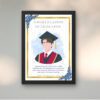Designed with a clean white base, a subtle blue watercolor splash, and a premium golden border, this frame elevates your cherished memory into a timeless keepsake. The graduate illustration is fully customizable, allowing you to replace it with a high-quality HD picture for a truly personal touch.
